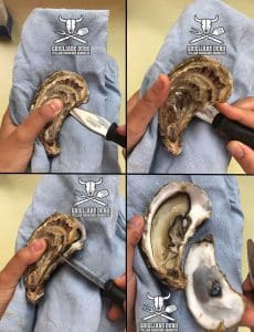 In mancanza di tale attrezzo è possibile utilizzare un coltello da cucina dotato di buona punta da inserire nel punto di giunzione posteriore dell’ ostrica.