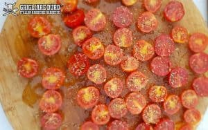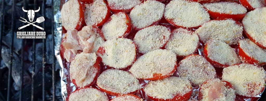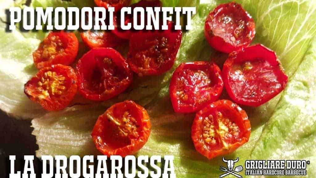 Chiunque abbia avuto una nonna sa che i pomodori gratinati al forno sono una goduria fuori scala, ma i pomodori confit o pomodorini confit (dato che usiamo i piccoli) cotti nel barbecue vanno oltre quello a cui siete stati abituati da piccoli, perchè uniscono le reminiscenze fanciullesche (tipo il cartone Ratatouille) ad un affascinante sapore di affumicato, inoltre l’aggiunta di zucchero di canna e del rum dona quel sapore caramellato che si sposa perfettamente con l’acido del pomodoro.