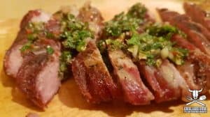 Per questo piatto abbiamo pensato ad una cottura in L&S molto semplice, in modo che il grasso si sciolga lentamente, che non richiede nessun tipo di accorgimento, se non la pazienza di attendere il tempo di cottura molto lungo, accompagnandolo con una salsa chimichurri (qui la ricetta per la salsa verde argentina) che ne ha esaltato il gusto