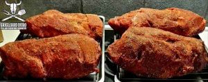 La prima cosa da fare per un ottimo pulled pork é un buon trimming, eliminare grosse parti di grasso superficiale rendendo la superficie della carne regolare aiuta a formare un bel bark uniforme.Dopo di che si spennella tutta la superficie con la senape, oppure con un velo di olio e si mette una generosa spolverata di Pork Rub.